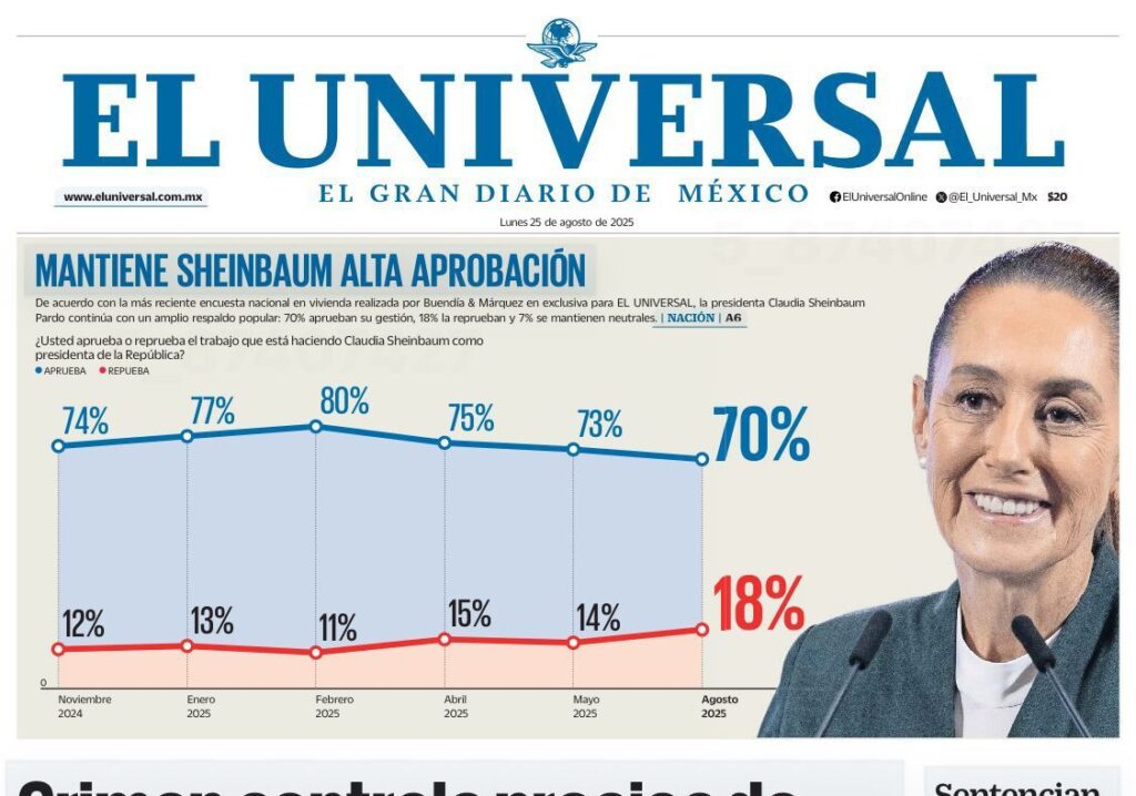 📊 Sheinbaum mantiene alta aprobación; llega a primer informe con 70%: encuesta Leer más »