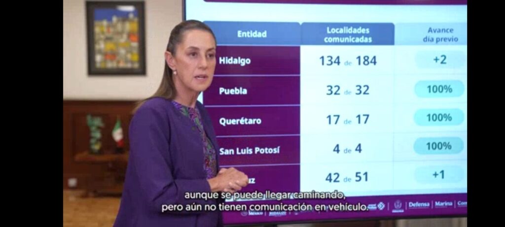 Ciudad de México, 30 de octubre de 2025.- La Presidenta de México, Claudia Sheinbaum Pardo, informó que más de 90 mil 681 familias recibieron el primer apoyo de 20 mil pesos, así como dos vales de despensas y uno de enseres, tras las afectaciones causadas por las lluvias extraordinarias que se presentaron en Veracruz, Hidalgo, Puebla, Querétaro y San Luis Potosí.