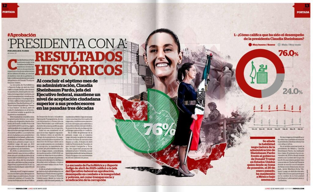 El resultado la consolida como la mandataria federal más aceptada desde el gobierno de Ernesto Zedillo Ponce de León, al
